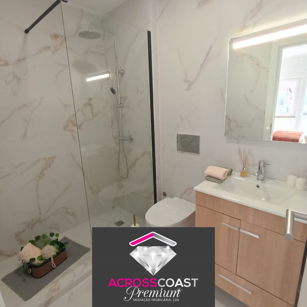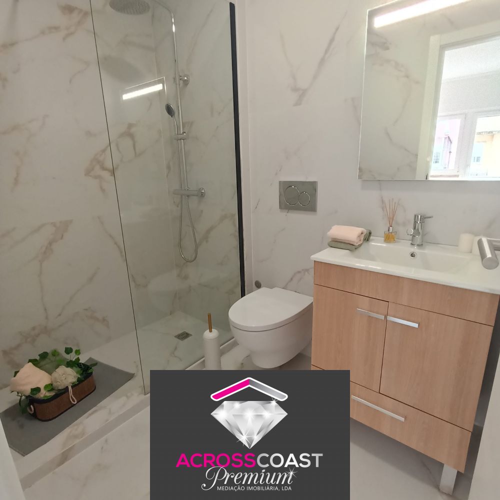 Caixilharia lacada a branco com vidros duplos e Oscilo Batentes em todas as assoalhadas. Teto falso com luzes embutidas leds, nos WCs, Cozinha, Sala, Hall e Quartos.